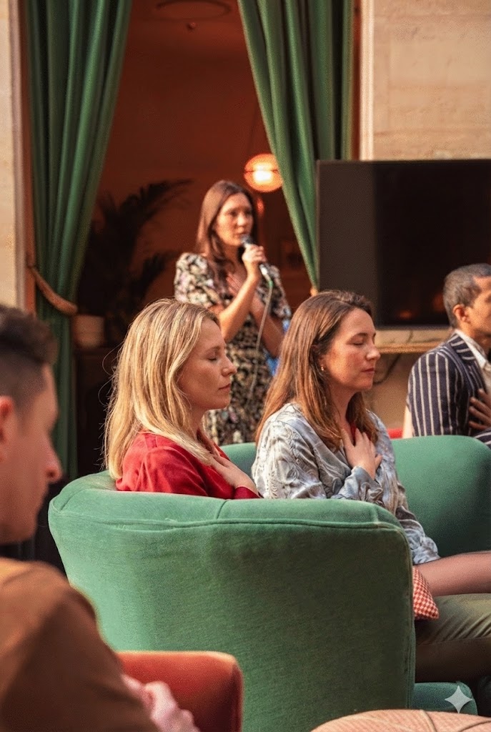 Group meditation, sound therapy/gong, aromatherapy workshop, breathwork/sophrology sessions, mindful eating workshop, gratitude sessions, mini yoga etc.